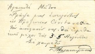 Αριστερά, το επισκεπτήριο του Μιχάλη. Απευθύνεται στον Μήτσο Σ. Πασχάλη.