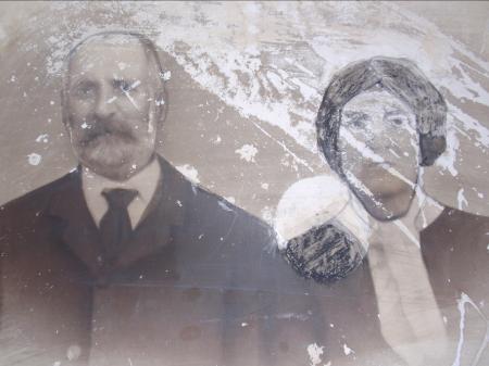 Η φωτογραφία είχε υποστεί φθορές και κάποιος είχε (προφανώς ανεπιτυχώς) προσπαθήσει να την αποκαταστήσει περνώντας με μολύβι τα φθαρμένα ή ελλείποντα τμήματα της.