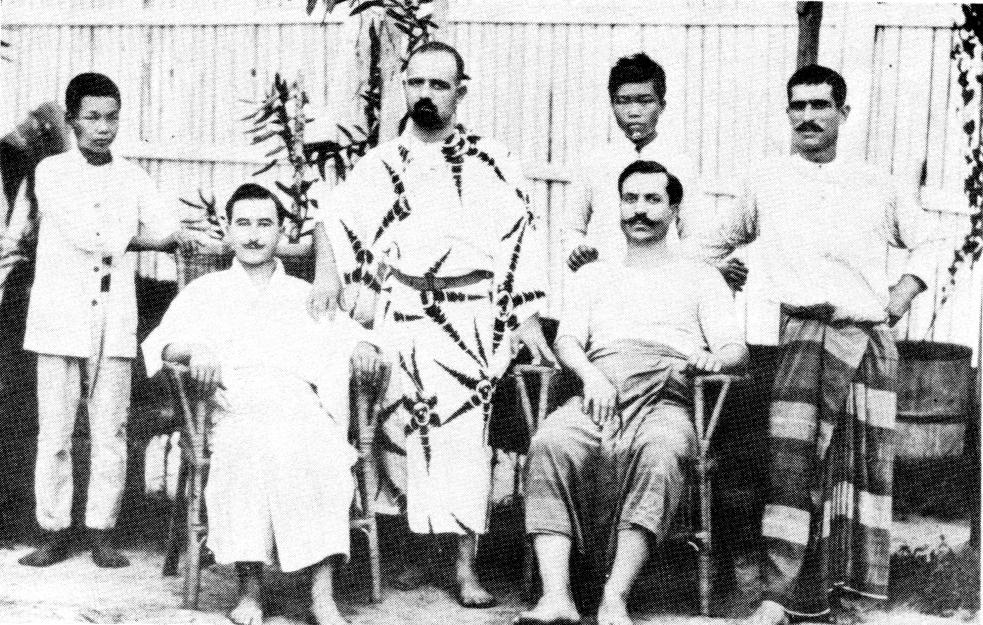 Ο Παλαιοκρασσάς Ανδρέας του Γεωργίου εμπρός δεξιά καθιστός (με το μεγάλο μουστάκι), κατά τη διάρκεια της κράτησης του στη Σιγκαπούρη από τους Αγγλους, μαζί με άλλους Στενιώτες την εποχή του Πρώτου Παγκοσμίου Πολέμου. Διακρίνονται επίσης, ο Πολέμης Δημήτριος του Αντωνίου (Πίκουλος) (141221) #1044 info (πίσω όρθιος στη μέση με το κιμονό) και ο Μπουκουβάλας Αντώνιος του Νικολάου (11) #2466 info (πίσω, όρθιος δεξιά). Διακρίνονται επίσης πίσω όρθιοι δύο ντόπιοι Ασιάτες και εμπρός αριστερά καθιστός Ευρωπαίος που δεν αναγνωρίζεται.