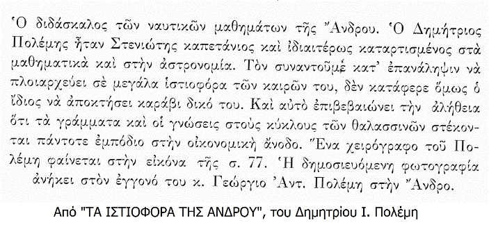 Για να διαβάσετε ένα κείμενο (στον πρώτο τόμο των «Στενιώτικων» του Γιώργη Φαλαγκά,του Στενιώτη Λεωνίδα (Λινάρδου) Καραπιπέρη, καθηγητή Μετεωρολογίας στο Πανεπιστήμιο Αθηνών, για τον Δημήτρη Πολέμη του παπαΜιχάλη, πατήστε εδώ.