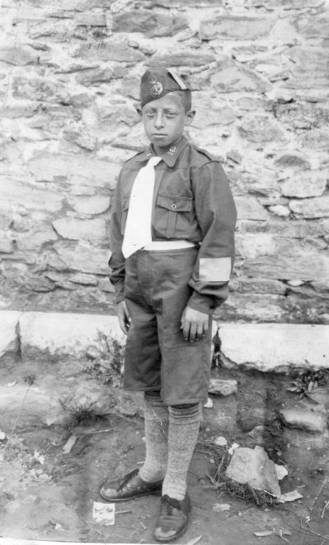 Αριστερά, ο Βαγγέλης σε παιδική ηλικία με την αδελφή Πολέμη Μανιώ του Λεωνίδα (1122241) #910 info σύζ Σάλαρη Γεωργίου του Κωνσταντίνου και δεξιά, με τη στολή της ΕΟΝ (μεταξύ 1936 και 1940).