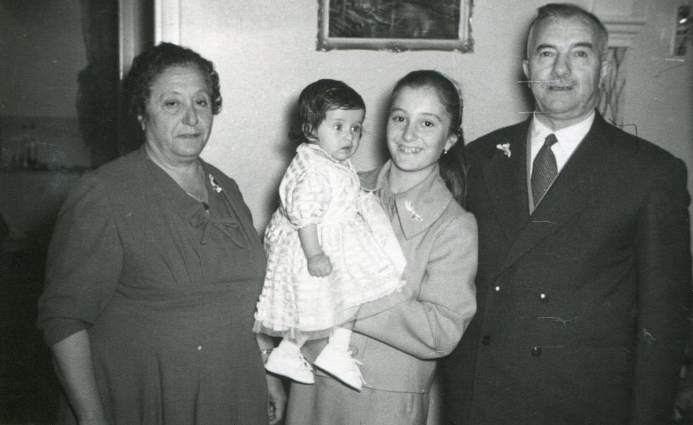 Στη φωτογραφία εμφανίζεται και η κόρη τους Πολέμη Φραγκούλα του Ιωάννη (1141612) #333 info σύζ. Φαλαγκά Διαμαντή του Θεοδόση που κρατάει την Πασχάλη Μαρία του Δημητρίου (1112112) #150 info που μόλις βαπτίστηκε (η Φραγκούλα ήταν η νονά της).