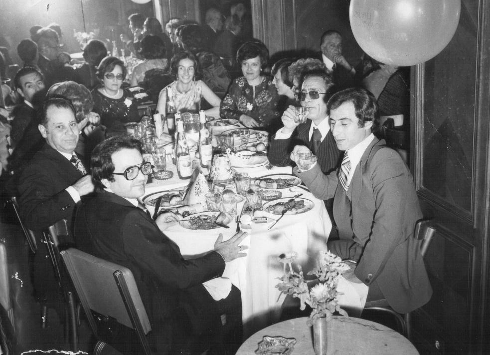 Σε πρώτο πλάνο αριστερά με τα γυαλιά είναι ο Μιλτιάδης Ραΐσης του Λεωνίδα (12341). Ο πατέρας του, Λεωνίδας Ραισης (1234) αρχικά έμενε στην Κωνσταντινούπολη και αργότερα εγκαταστάθηκε στη Βηρυτό όπου παντρεύτηκε την Ελευθερία Καραπιπέρη με κάποια καταγωγή και αυτής από την Ανδρο. Στη Βηρυτό ασκούσε το επάγγελμα του ναυτικού πράκτορα. Δίπλα του αριστερά, διακρίνεται κάποιος Νίκος Δανιόλος από τ' Αλαδινού. Στο βάθος αριστερά διακρίνεται μόλις ο αδελφός του Μιλτιάδη, ο Γιώργος (12342). Στο βάθος προς τα αριστερά με τα γυαλιά η Σύμπουρα Φραγκούλα του Μιχαήλ (12221) #1531 info σύζ. Ραΐση Νικολάου του Μιλτιάδη . Δύο θέσεις προς τα δεξιά της η Κατσίκη Ελένη του Δημητρίου (1313) #2591 info σύζ. Γιαννίση Μιχάλη του Αντωνίου και δίπλα της προς τα δεξιά της φωτογραφίας η Ραΐση Ειρήνη του Νικολάου (12361) #1532 info σύζ. Αλαφραγκή Ζαννή. Δεξιότερα στη φωτογραφία, με τα γυαλιά και το ποτήρι το κρασί ο Γιαννίσης Μιχαήλ του Αντώνη (1141) #2596 info και σε πρώτο πλάνο δεξιά Αλαφραγκής Ζαννής του Θωμά (12361).