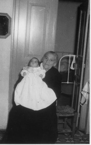 Η φωτογραφία αριστερά τραβήχτηκε το 1956. Η Ασημιώ με τον εγγονό της Χαρίλαο, την ημέρα της βάπτισης του. |