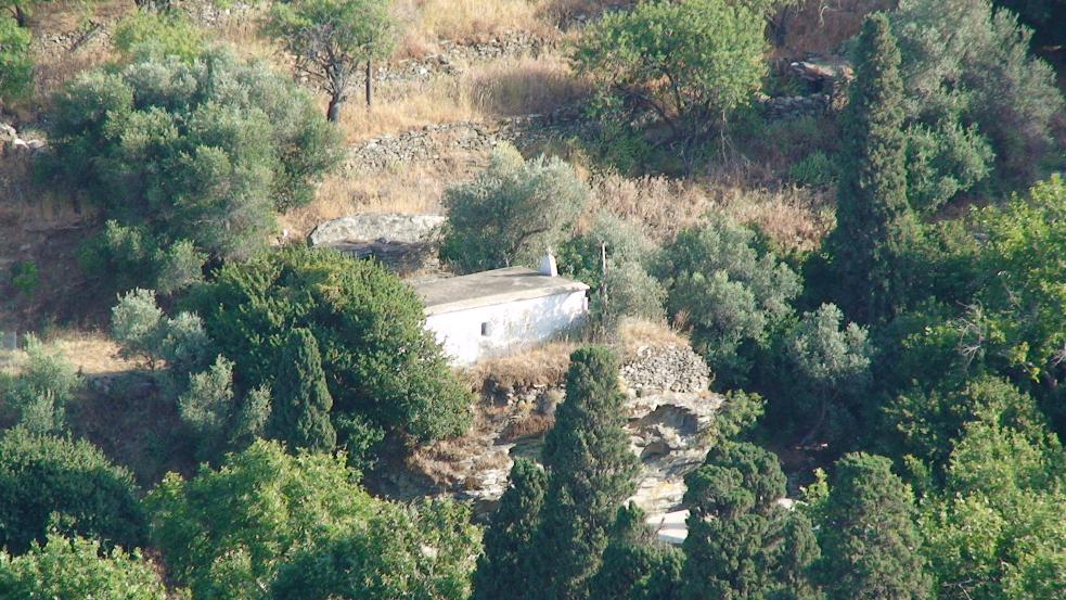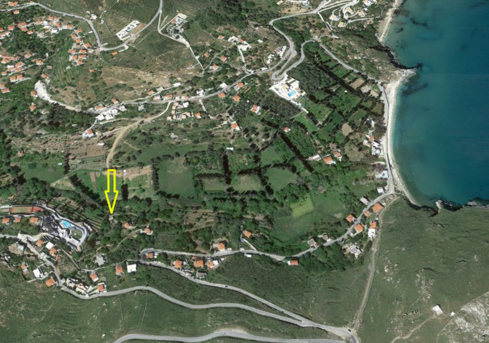 Κάτω, η θέση του εξωκλησιού των Αγίων Θεοδώρων σημειώνεται με το κίτρινο βέλος.