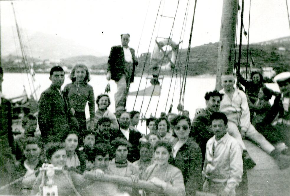 Πίσω από τον Σαμιωτάκη με τα μαύρα γυαλιά η Κουρτέση Ασημίνα (Μπέμπα) Βασίλη (1343) - info σύζ. Μπεγλέρη Νικολάου του Λεονάρδου. Εμπρός από τον Σαμιωτάκη η Μανδαράκα Μαρίκα του Νίκου (12221) #1514 info.