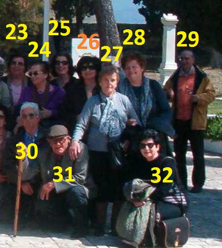 1. Μπεγλέρης Νικολός του Λεονάρδου (1711) #392 info και η σύζυγος του 2. Κουρτέση Ασημίνα (Μπέμπα) του Βασ. (1343) - info 3. Σαρρή Ειρηνούλα του Βασίλη (134221) #1838 info σύζ. Παλαιοκρασσά Ιωάννη του Νικολάου 4. Μαλταμπέ Μαρία του Γεωργίου (1112512) #2060 συζ. Καλογήρου Κώστα του παπαΝικόλα 5. Λογοθέτη Αννα του Δημητρίου (12332) #1698 info σύζ. Εξαδάκτυλου Γρηγορίου του Νικολάου, 6. Παλαιοκρασσά Φραγκούλα του Γιαννούλη (1112114111) #3554 σύζ. Μπουλμέτη Γιάννη του Χρήστου 7. Λογοθέτη Σωτηρία του Μιχαήλ (12246) #1794 info σύζ. Λέκκα Φρατζέσκου του Ζαννή 8. Κυρτάτας Μιχαήλ του Νικ. (112213331) #2079 info 9. Μπουλμέτης Γιάννης του Αντώνη (1331) #2094.