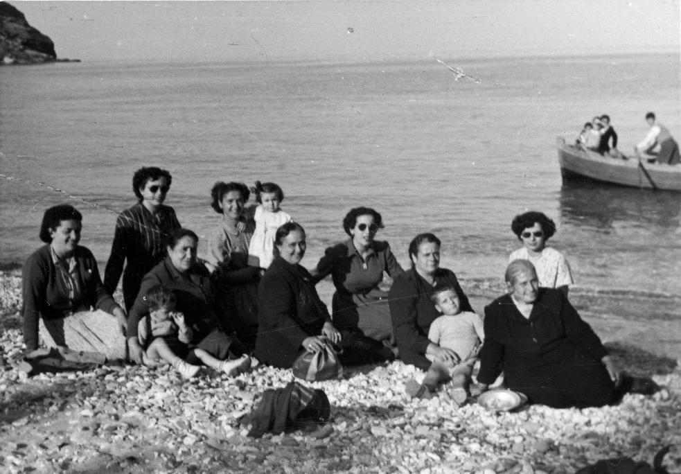 Παρέα στην παραλία στα Γιάλια, ανήμερα της Θεοτόκου (φωτογραφία του 1951)