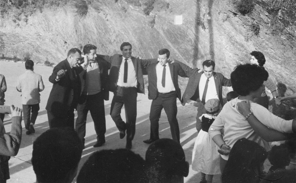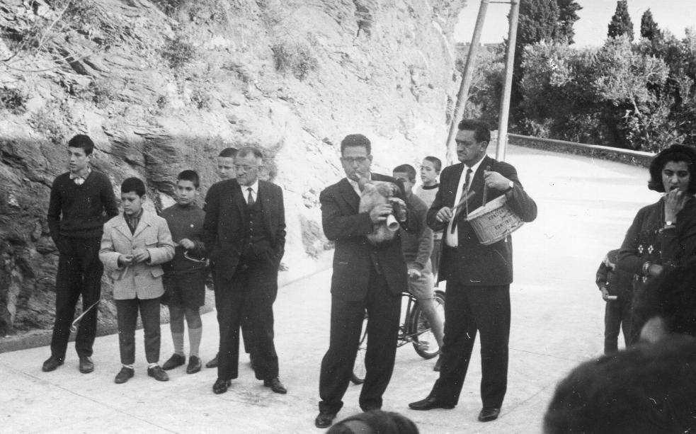 Ελευθερίου Παντελής του Γεωργίου (151) #4436 info Εξαδάκτυλος Αντώνης του Δημητρίου (1282) #525 info Ξηροπαΐδης Βασίλης του Ιωάννη (12351) - Μπεγλέρης Δημήτρης του Χρήστου (15511) #508 info που διακρίνεται πίσω από τον Βασιλόπουλο Ευάγγελο του Νικολάου (14) #2521 info. Στο κέντρο ο Πολέμης Νικολός του Κωνσταντίνου (141318) #1109 info με τη σαμπούνα του Πίσω δεξιά του διακρίνεται ο Σύμπουρας Βαγγέλης του Αντωνίου (15113) #203 info και ο Βήχος Μανώλης του Μιχαήλ (118211) #287 info Σύμπουρας Αντώνης του Δημητρίου (1511) #195 info με το ντουμπί . Στην άκρη δεξιά της φωτογραφίας διακρίνεται η Χαζάπη Μαργαρούλα του Δημητρίου (113221) #198 info σύζ. Βολτή Ιωάννη |
