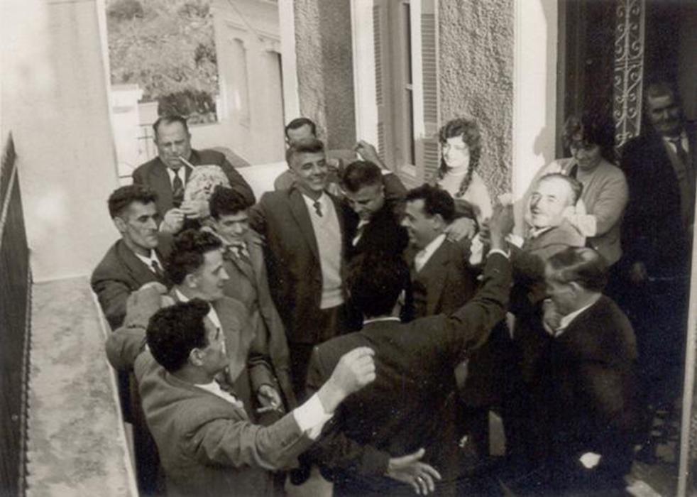 Εδώ, στο κέντρο και πάνω μέρος της φωτογραφίας, μεταξύ Δημήτρη Κουτσούκου και Μήτρου Εξαδάκτυλος τους οποίους κρατάει από τους ώμους, χορεύει ο Μπουκουβάλας Νικολός του Δημητρίου (121) #795 info.