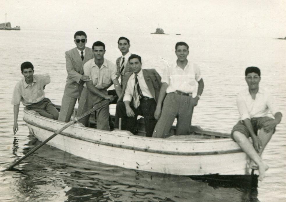 Παρέα σε βάρκα στο Νειμποργιό (λίγο μετά το 1950).