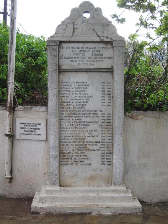 Στο βόρειο μέρος της πλατείας υπάρχει στήλη με ανάγλυφα τα ονόματα των (μέχρι το 1957) ευεργετών του χωριού.