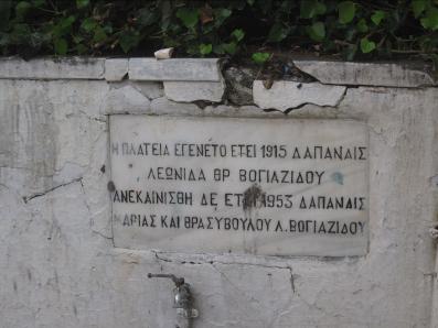 Η διαμόρφωση και η τσιμεντόστρωση της πλατείας (με δαπάνες της Μαρίας και του Θρασύβουλου Βογιαζίδη του Λεωνίδα) έγινε το 1953 και εκείνη την εποχή θεωρήθηκε μεγάλη πρόοδος. Αργότερα, το 1998 τα παιδιά του Δημήτρη και της Νομικής Παλαιοκρασσά φρόντισαν για την πλακόστρωση (με φυσικές λείες πλάκες) της πλατείας.