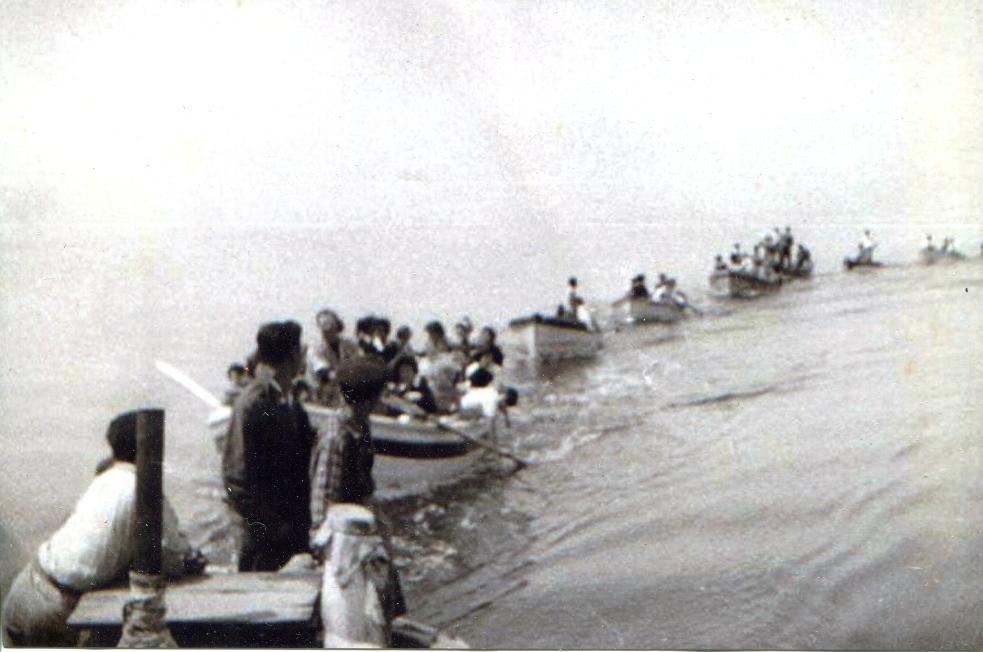 Στη φωτογραφία διακρίνονται βάρκες γεμάτες Στενιώτες που τις τραβάει κάποιο καΐκι με προορισμό το εξωκλήσι της Θεοτόκου στο ομώνυμο νησάκι. Η φωτογραφία τραβήχτηκε από τον επαγγελματία φωτογράφο Αλέκο Χάλαρη ο οποίος ήρθε και εγκαταστάθηκε στην Ανδρο το 1947.