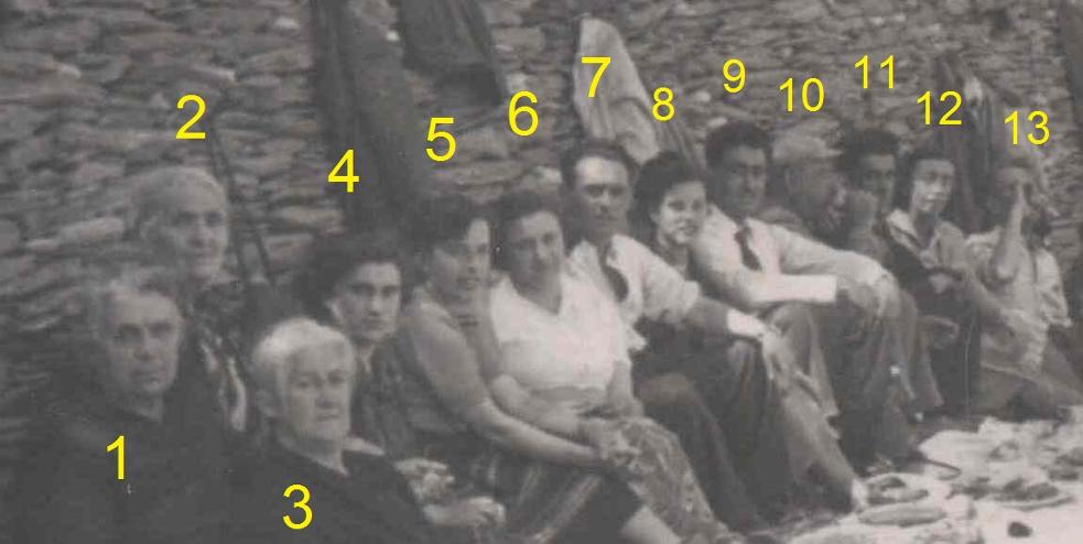 Στο δεξί μέρος της φωτογραφίας πρώτος φαίνεται ο 14. Μπουκουβάλας Χρήστος του Αντωνίου (112) #2489 info (με τα γυαλιά ηλίου) και πίσω του ο 15. Λογοθέτης Αντώνιος του Μιχαήλ (12241) #1790 και η σύζυγος του 16. Μπέη Ελένη του Μιχαήλ (11256) #1796 info και πιο πίσω η 17. Λογοθέτη Ανεζιώ του Μιχαήλ (12245) #1793 σύζ. Πέτσα Νικολάου του Δημοσθένη.