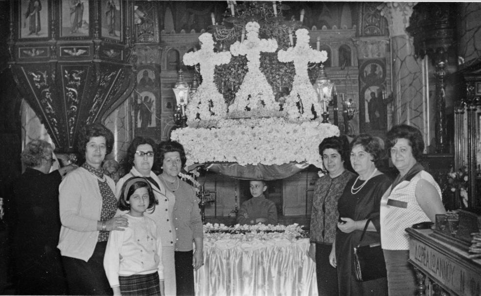 Στόλισμα του Επιταφίου της ενορίας της Παναγίας (φωτογραφία του 1967)
