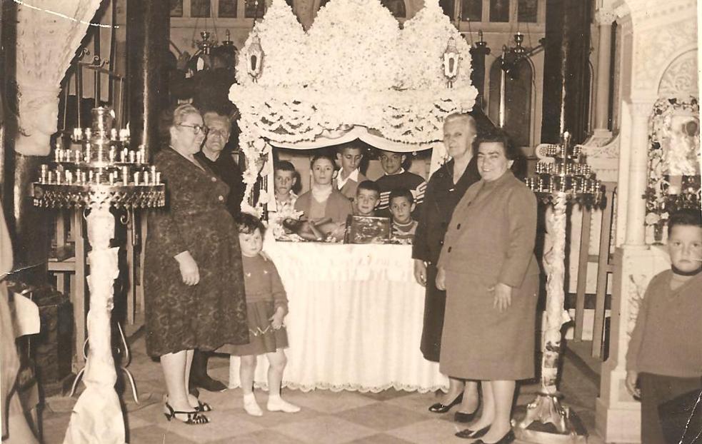 Στόλισμα του Επιταφίου της ενορίας του Αη Γιώργη (λίγο μετά το 1961).