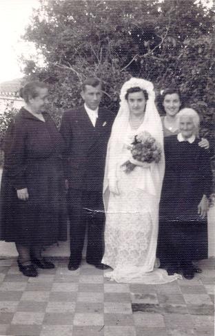 Στη δεξιά φωτογραφία, ο κουμπάρος Γιώργος Κολυδάς (από το Μεσαθούρι) οι νεόνυμφοι και δύο παράνυμφες.