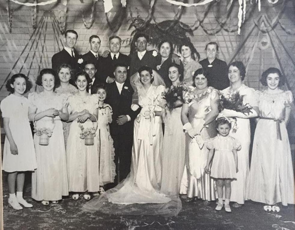 Το ζευγάρι στο κέντρο της φωτογραφίας. Ο γάμος έγινε στην Αμερική στις 15 Απριλίου του 1939. Ο γαμπρός γεννήθηκε το 1898 στον Μαρμαρά της Τουρκίας. Ηταν ο δεύτερος γάμος του. Η πρώτη του σύζυγος είχε αποβιώσει και είχε από αυτήν μια κόρη ονόματι Anestasia (Αναστασία).