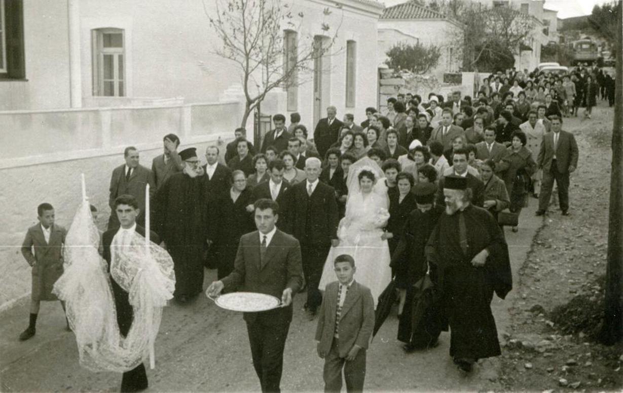 Ο γάμος έγινε στις 27 Δεκεμβρίου του 1961 στη Μεσαριά, τόπο κατοικίας της νύφης Βιολέτας Μπαφαλούκου. Η φωτογραφία είναι του επαγγελματία φωτογράφου της Χώρας, Οννίκ Εσαγιάν.