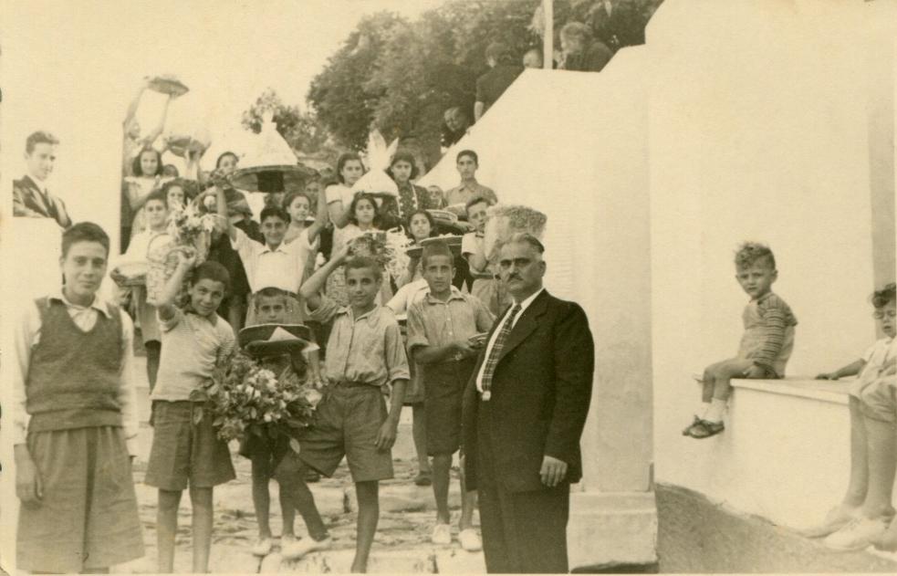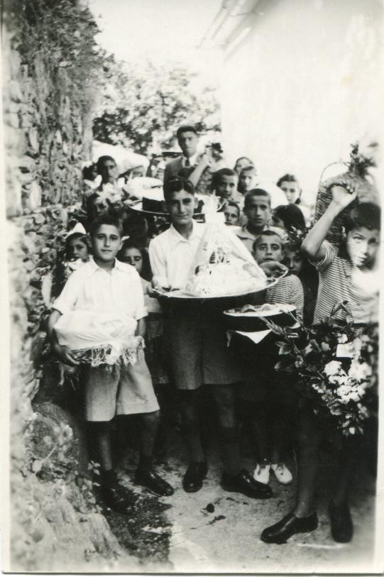 και δεξιά ο Αντώνογλου Γιάννης του Κωνσταντίνου (121) #4757 με νταμιτζάνα και ανθοδέσμη.