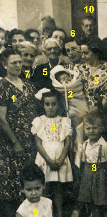 1. Η Πολέμη Ανδριάνα του Κωνσταντίνου (141313) #819 info σύζ. Δαγιάση Αντωνίου του Ματθαίου φαίνεται ολόκληρη αριστερά από τον 2. Πολέμη Κωνσταντίνο του Νικολάου (1413181) #1126 info που μόλις βαφτίστηκε που τον κρατάει η νονά του 3. Παλαιοκρασσά Ειρήνη του Ιωάννη (11141331) #2432 info σύζ. Τζουμέζη Θεοδοσίου του Δημητρίου.
