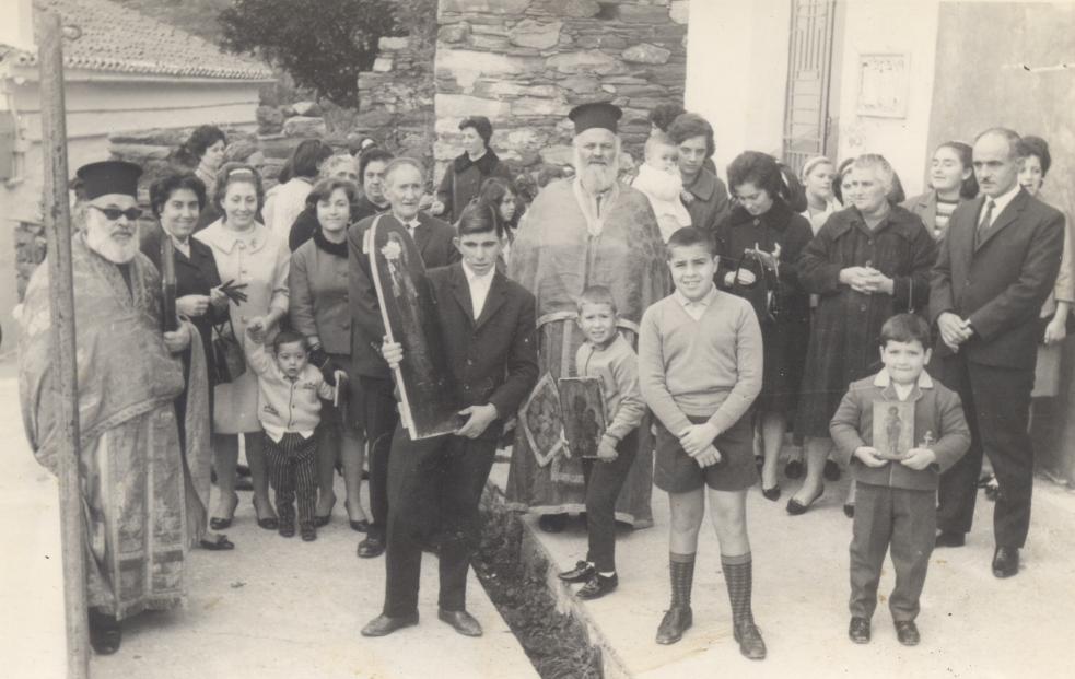 Την εικόνα κρατάει ο Παλαιοκρασσάς Νικόλαος του Ιωάννη (131552) #2987 info. Πιίσω από την εικόνα διακρίνεται ο Αντώνογλου Κωνσταντίνος του Ιωάννη (12) #4763 info. Ο παπάς στο κέντρο είναι ο Παπανικόλας Καλογήρου (1) #2157 info.