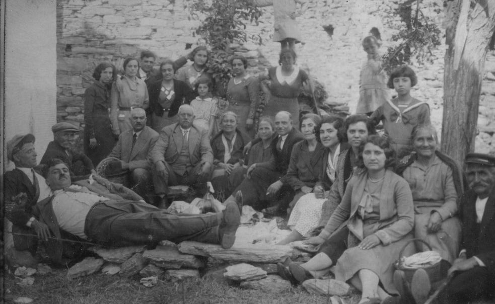 Ο καθιστός αριστερά με την τραγιάσκα και γραβάτα είναι ο Σύμπουρας Αντώνης του Σταμάτη (1226) #3510 info και δίπλα του με τραγιάσκα άγνωστος. Ξαπλωμένος μπροστά τους ο Παλαιοκρασσάς Δημήτριος του Νικολάου (13157) #3202 info Με το καλάθι στο χέρι ο Μπέης Γιώργης του Αντώνη (1153) - info. Κατόπιν δύο ζευγάρια, το πρώτο ζευγάρι Σαρρής Ιωάννης του Κωνσταντίνου (Σαρρηγιαννάκης) (1411) #2417 και η σύζυγος του Βαλμά Ασημιώ του Δημητρίου (1125) #2419 το δεύτερο ζευγάρι Κυρτάτας Νικολός του Μιχαήλ (11221333) #2545 και η σύζυγος του Κουτσούκου Ειρήνη του Χαριλάου (11115) #2565 info