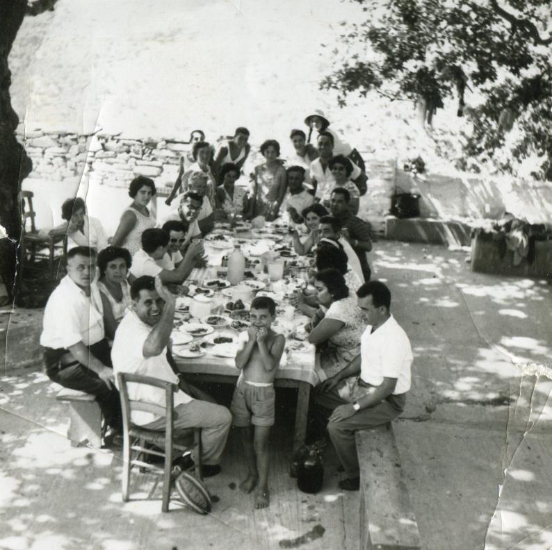 Στη αριστερή μεριά του τραπεζιού καθιστοί (από εμπρός προς τα πίσω) Μπουκουβάλας Νικολός του Δημητρίου (121) #795 info και η σύζυγος του Κυρτάτα Μοσχούλα του Φιλίππου (112213342) #497 info Με γυρισμένο το κεφάλι η σύζυγος του Επαμ.Λογοθέτη Κυπραίου Φώφη του Στυλιανού (12331) - (φαίνεται καλύτερα στην επόμενη φωτογραφία) Γιαλούρη Ειρηνούλα του Νικολάου (122222) #2944 info σύζ. Μαύρου Ανδρέα του Βασίλη Λογοθέτης Επαμεινώνδας του Δημητρίου (12331) #2316 info και πίσω του όρθια η Μπουλμέτη Χαρίκλεια του Χρήστου (1352) #2892 info Χαζάπης Ανδρέας του Γιαννούλη (11311) #301 info (δίπλα του καθιστό άλλο ένα άτομο που μόλις διακρίνεται) και στο βάθος όρθια αριστερά η σύζυγος του Ανδρέα Χαζάπη Πολέμη Μαρία του Θεοδώρου (114162) #1343 info Δεξιά της καθιστή η Κουτσούκου Κούλα του Αντωνίου (1292) #2043 info σύζ. Πασχάλη Δημήτρη του Σωκράτη Και πίσω της σκυφτός ο Εξαδάκτυλος Νικολός του Γρηγορίου (1271) #522 info Δεξιά τους όρθια άγνωστη και κατόπιν ο Πασχάλης Δημήτρης του Σωκράτη (111211) #148 info Και πίσω του όρθια άγνωστη η Σαρρή Πηνελόπη (Πόπη) του Δημητρίου (131253) #764 info σύζ. Κουρτέση Παναγιώτη (Νότη) του Βασιλείου. Πίσω δεξιά όρθια με το καπέλο η Παλαιοκρασσά Γιολάντα του Γεωργίου (1111221211) #2128 info και εμπρός ο πατέρας της Παλαιοκρασσάς Γεώργιος του Δημητρίου (111122121) #2019 info και εμπρός δεξιά του όρθια η σύζυγος του Φαλαγκά Ρηνιώ του Βασιλείου (14351) #2017 info. Εμπρός από τη Ρηνιώ καθιστός ο Κουρτέσης Παναγιώτης (Νότης) του Βασιλείου (1341) #771 info και δίπλα του η σύζυγος του Σαρρή Πηνελόπη του Δημητρίου (131253) #764 info ο Εξαδάκτυλος Γρηγόριος του Νικολάου (127) #490 info δύο κυρίες που δεν διακρίνονται (οι Μπαφαλούκου Φλωρεντούλα του Αντωνίου σύζ. Παλαιοκρασσά Νικολάου του Μιχαήλ και η Λογοθέτη Αννα του Δημητρίου σύζ. Εξαδάκτυλου Γρηγορίου του Νικολάου), η Εξαδακτύλου Πολυτίμη του Νικολάου (129) #494 info σύζ. Καραγιάννη Ευαγγέλου του Σωτήρη. και τελευταίος στο δεξιότερο μέρος της φωτογραφίας ο Κυρτάτας Νικολός του Φιλίππου (112213343) #499 info.