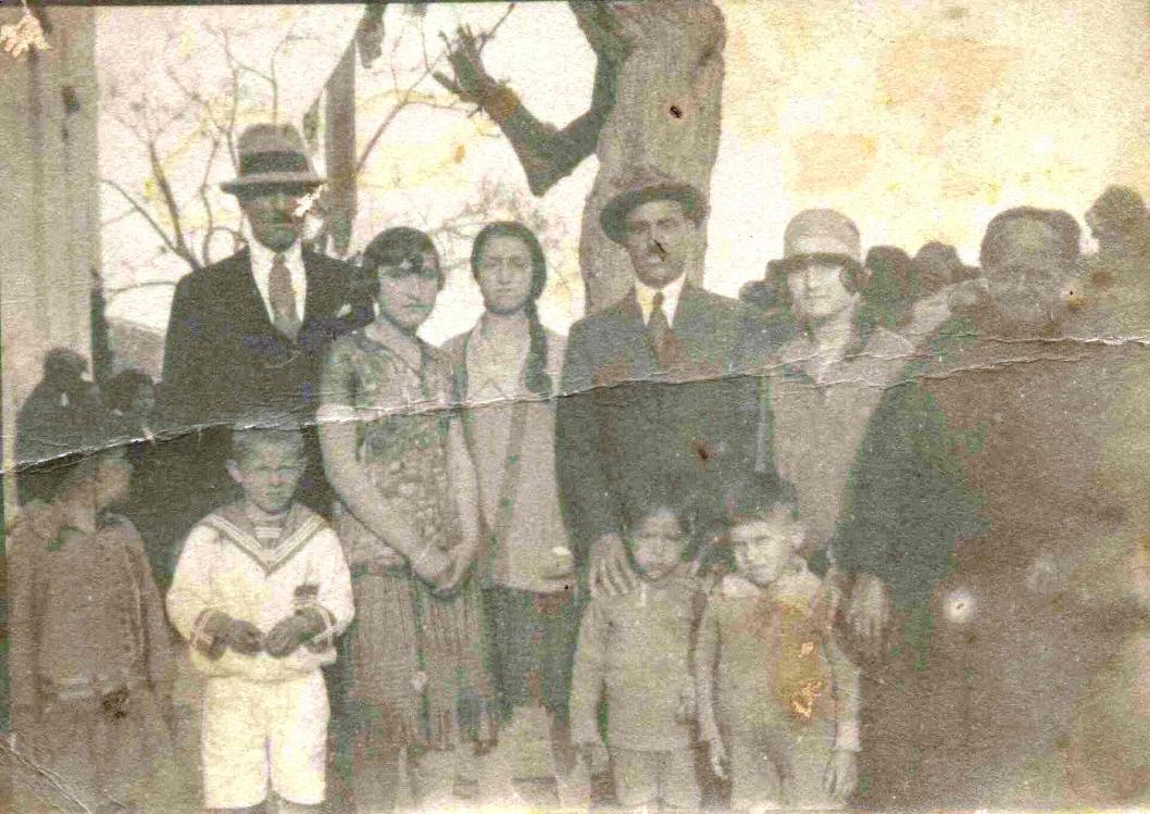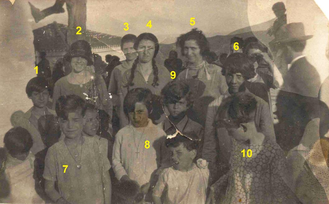 Αριστερά από την Κατίνα στέκεται η Βαλμά Αννα του Λεωνίδα (111Β4) #1977 info σύζ. Φαλαγκά Γιαννούλη του Δημητρίου και δεξιά από τον άνδρα με το καπέλο στέκεται (και αυτή με καπέλο) η Βαλμά Ερηνούλα του Λεωνίδα (111B2) #1721 info συζ. Γιαλούρη Σταματίου του Νικόλαου.