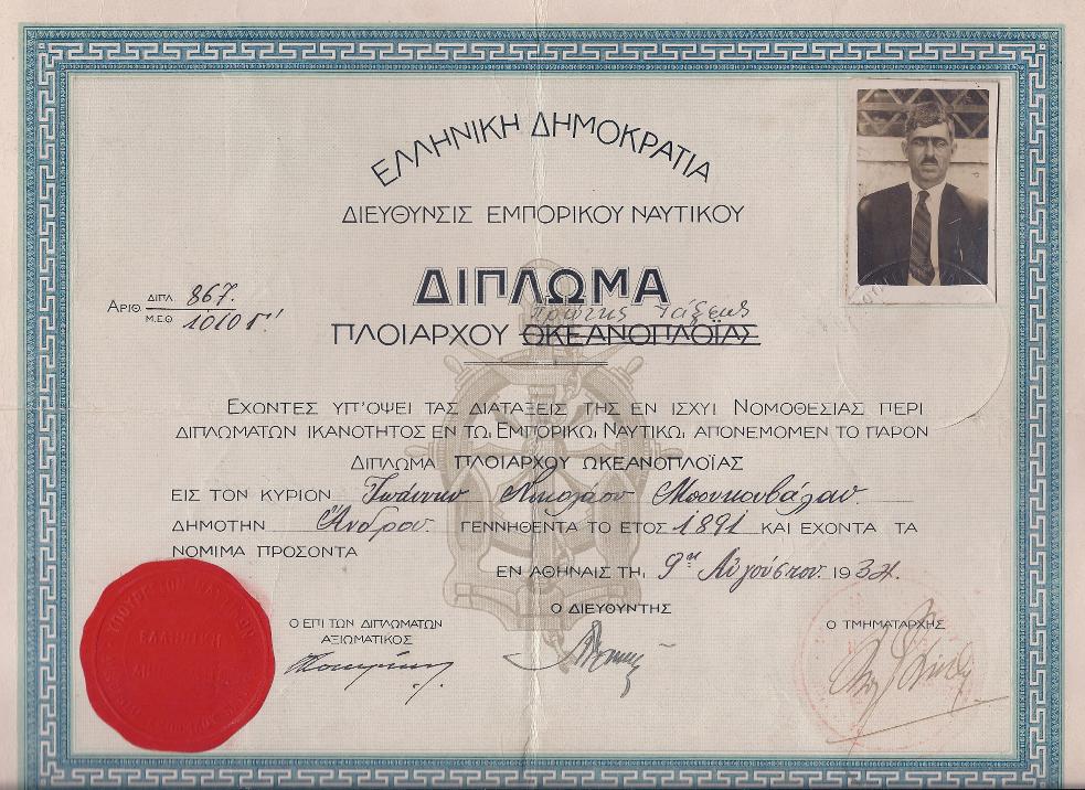 Το δίπλωμα του πρώτου καπετάνιου Μπουκουβάλα Ιωάννη του Νικολάου (13) info.