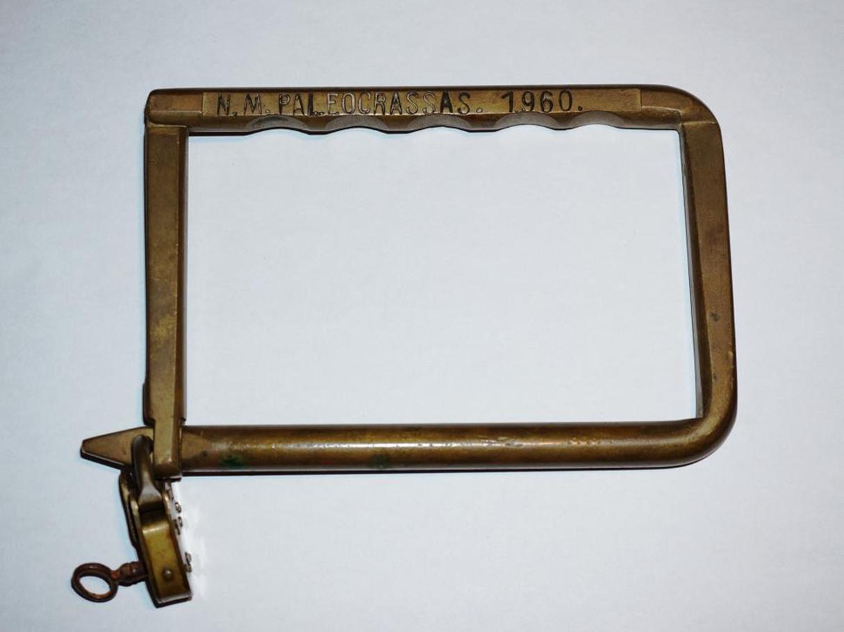 Στη φωτογραφία επάνω η καβίλια του σάκου του Παλαιοκρασσά Νικολάου του Μιχαήλ (Μπουλάκα) (131541) #1703. Το πάνω μέρος με χαραγμένο το όνομα του και σχήμα κατάλληλο για τη μεταφορά του σάκου (σαν χερούλι).