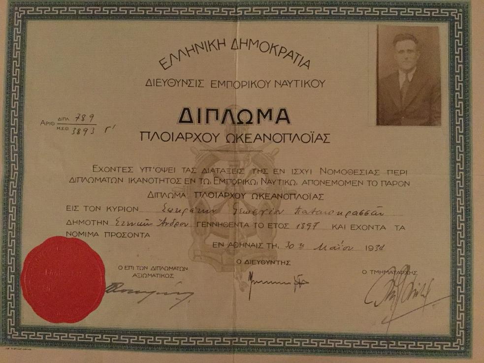 Τη φωτογραφία με το δίπλωμα προσέφερε ο εγγονός του κος Σωκράτης Πέτρου Παλαιοκρασσάς.
