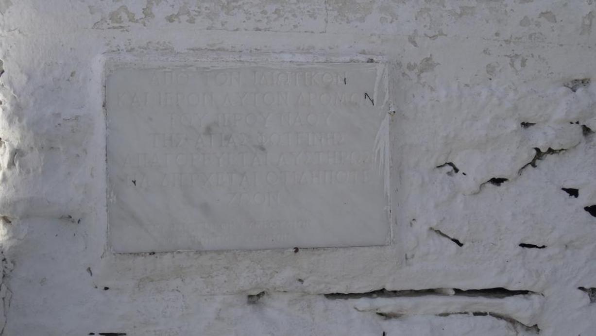 ΑΠΟ ΤΟΝ ΙΔΙΩΤΙΚΟΝ ΚΑΙ ΙΕΡΟΝ ΑΥΤΟΝ ΔΡΟΜΟΝ ΤΟΥ ΙΕΡΟΥ ΝΑΟΥ ΤΗΣ ΑΓΙΑΣ ΦΩΤΕΙΝΗΣ ΑΠΑΓΟΡΕΥΕΤΑΙ ΑΥΣΤΗΡΩΣ ΝΑ ΔΙΕΡΧΕΤΑΙ ΟΤΙΔΗΠΟΤΕ ΖΩΟΝ