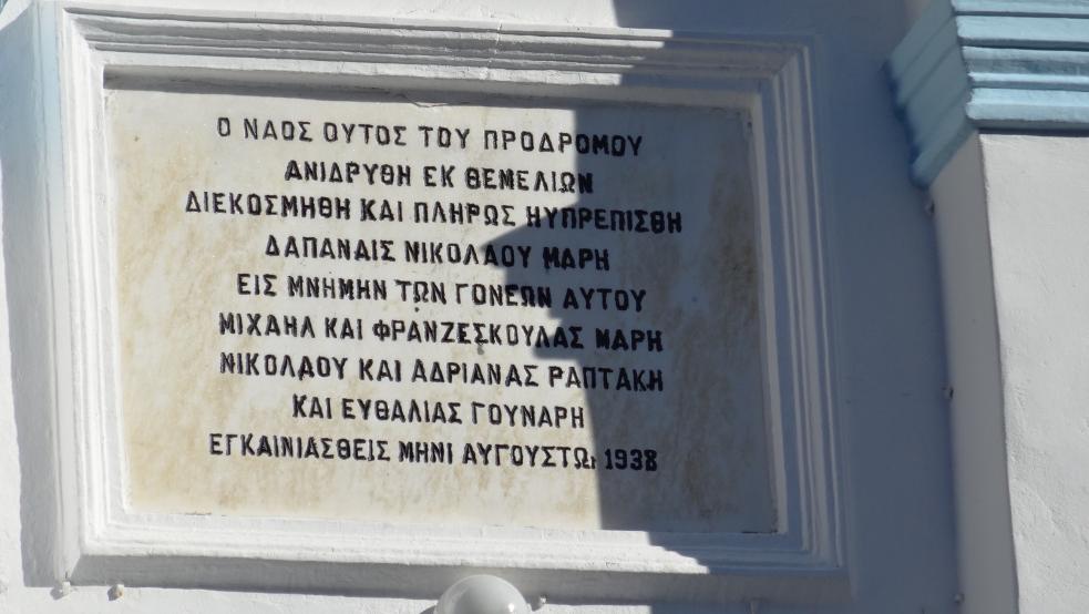 Επιγραφή στο εξωκλήσι του Αη Γιάννη στα Γιάλια