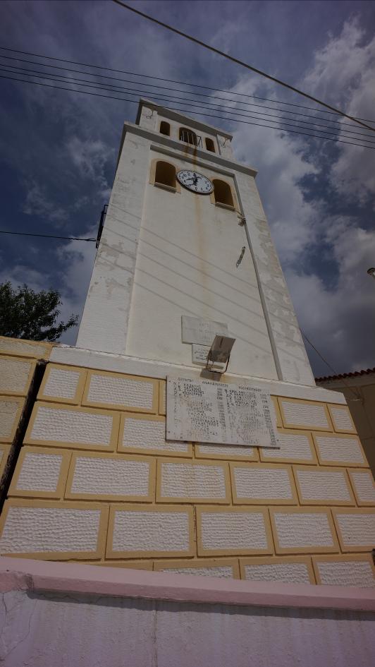 Αριστερά το κωδωνοστάσιο του Αη Γιώργη όπως φαίνεται από το δρόμο.