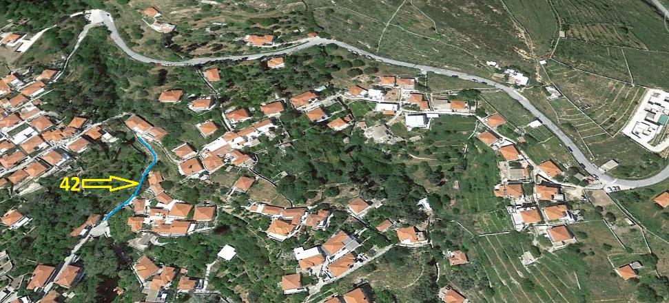 Με το κίτρινο βέλος σημειώνεται η θέση της επιγραφής. Με γαλάζιο χρώμα η οδός 28ης Οκτωβρίου όπως είναι το επίσημο όνομα του Κακόβολου