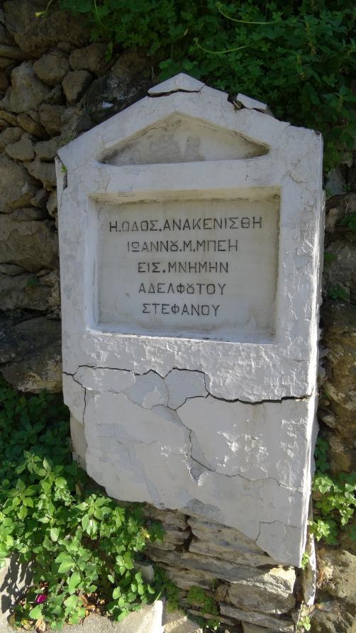 Η επιγραφή που βρίσκεται προς το κάτω μέρος του Κακόβολου, αναφέρεται στους Μπέη Γιάννη του Μιχαήλ (11251) που είναι ο χορηγός του έργου και Μπέη Στέφανο του Μιχαήλ (11253) για την ανάμνηση του οποίου έγινε το έργο κάπου στα τέλη της δεκαετίας του 1950.