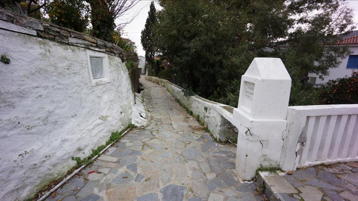 Η καμάρα διακρίνεται στο βάθος του δρόμου. |