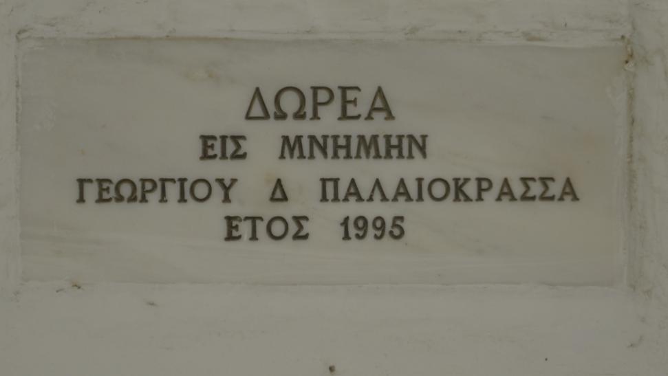 Στην επιγραφή αναφέρεται το όνομα του Γεωργίου Δ. Παλαιοκρασσά (111122121) #2019 . |
