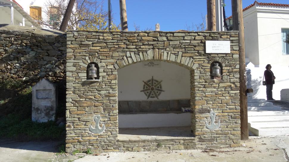 Η επιγραφή είναι στο εσωτερικό του στέγαστρου. Στον εξωτερικό τοίχο του στέγαστρου, πάνω δεξιά υπάρχει μαρμάρινη πλάκα που αναφέρεται στο γιο του Γιώργη, Δημήτρη. Το καλαίσθητο κτίσμα διακοσμείται με σύμβολα της δουλειάς των Γιώργη και Δημήτρη. Στο δεξί μέρος της φωτογραφίας διακρίνεται το πατρογονικό σπίτι του Γιώργη Παλαιοκρασσά. |