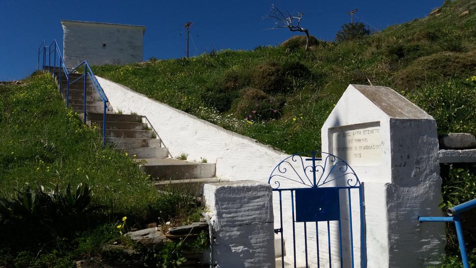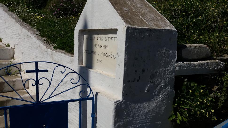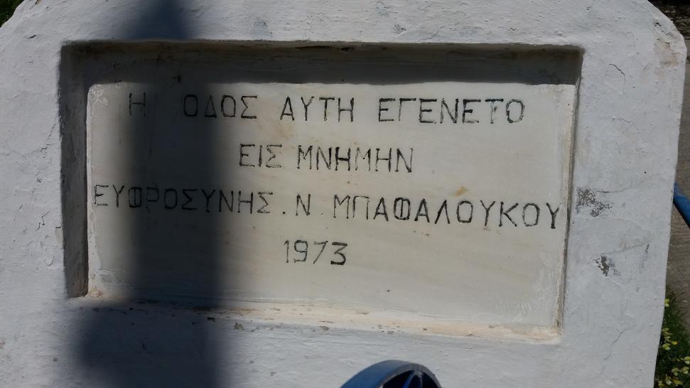 Επιγραφή στο δρομάκι προς τον Αη Σάββα εις μνήμην Ευφροσύνης Ν. Μπαφαλούκου