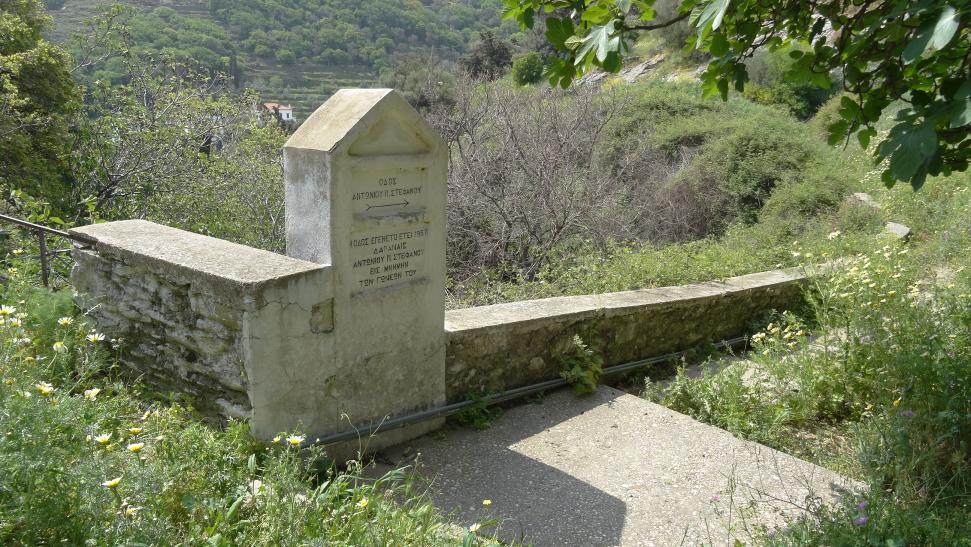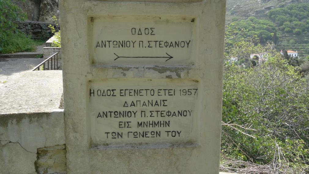 Οδός Αντωνίου Π. Στεφάνου. Επιγραφή κοντά στο γεφύρι του Καραβά.