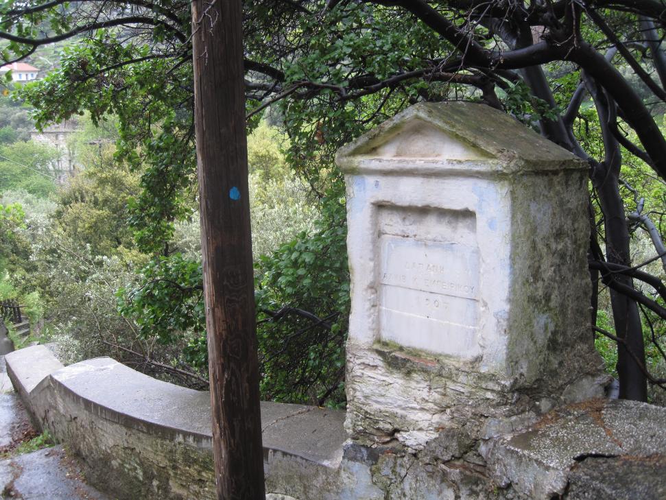 Επιγραφή του 1907 στον δρόμο από το γεφύρι κοντά στη Φάμπρικα προς το κάτω χωριό.