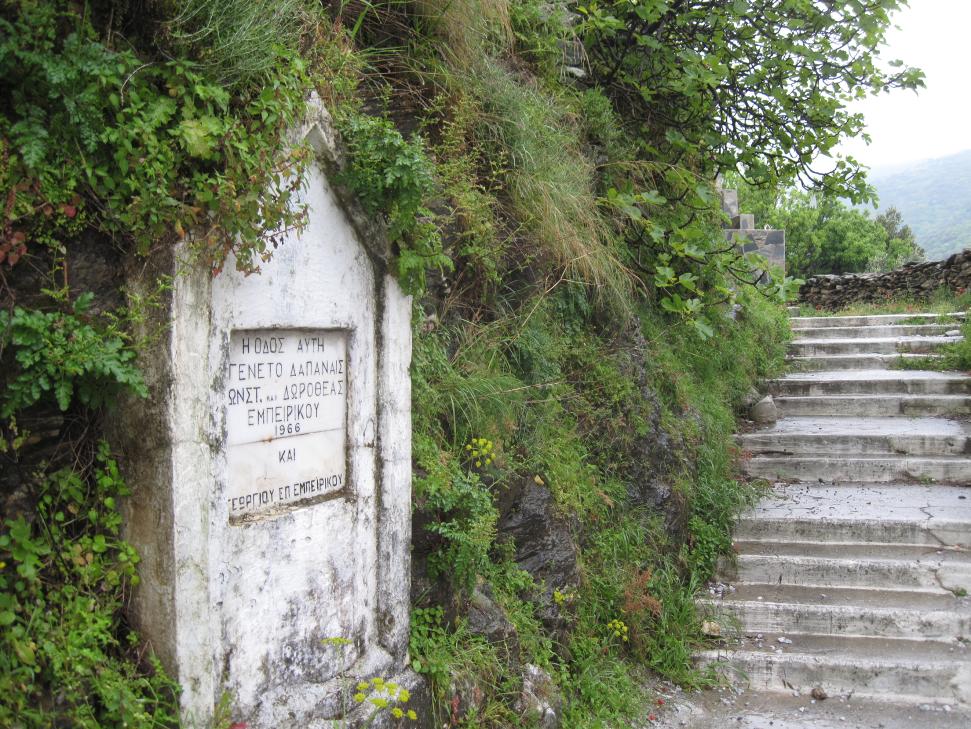 Επιγραφή στο δρόμο που συνδέει τον αμαξιτό δρόμο στη Στρατολάτισσα με το γεφύρι του Εμπειρίκου.