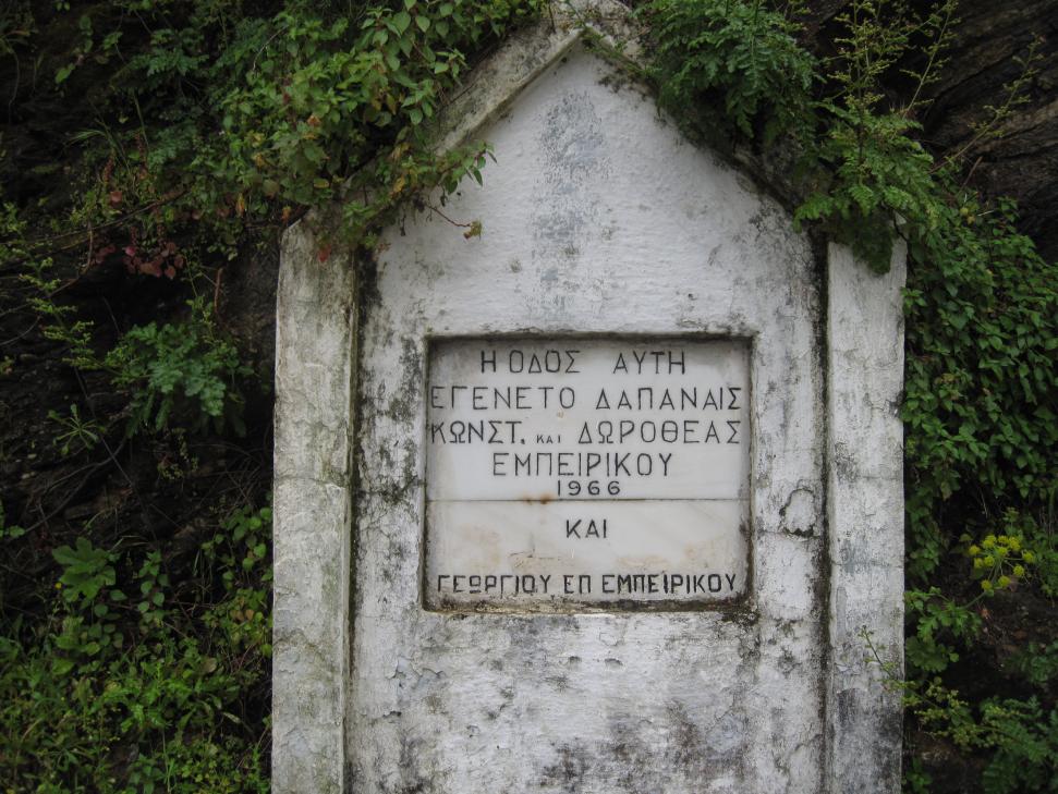 Οι Κωνσταντίνος και Δωροθέα Εμπειρίκου αναφέρονται σαν δωρητές σε μαρμάρινες πλάκες και σε άλλα σημεία του χωριού. Για να δείτε κάποια άλλη πλάκα με τα ονόματα τους, πατήστε εδώ. |