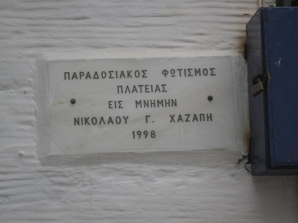 Επιγραφή στην Πλατεία του χωριού για τον παραδοσιακό φωτισμό.