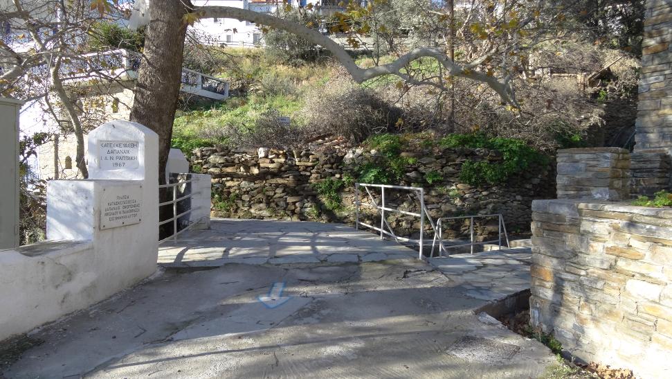 Επιγραφή στο Σταθμό του χωριού για την κατασκευή της πλατείας του.