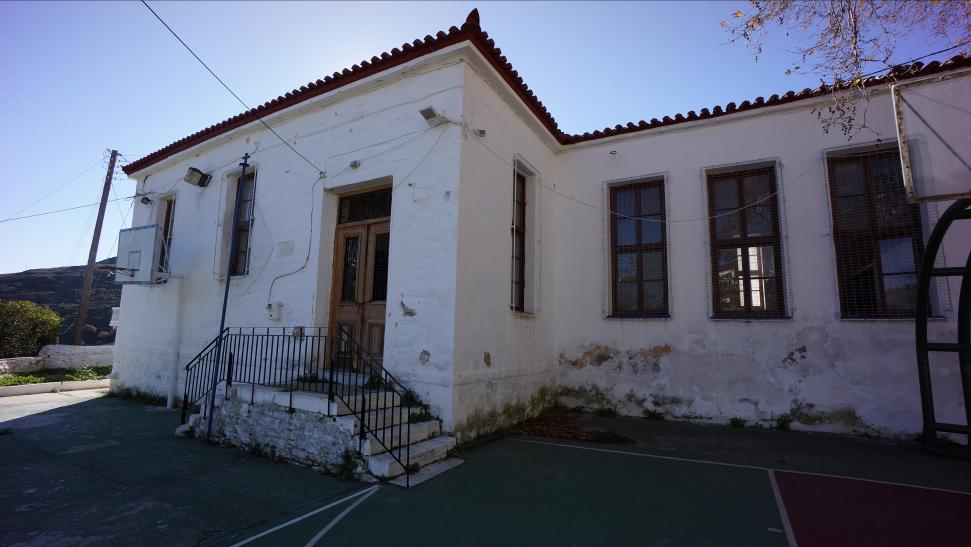 Η επιγραφή μόλις διακρίνεται αριστερά από τη πόρτα του σχολείου, πάνω από το μετρητή της ΔΕΗ... |