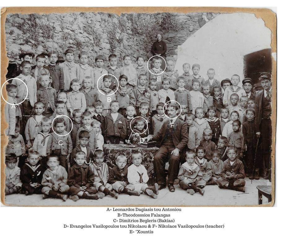 A - Δαγιάσης Λεονάρδος του Αντωνίου (121) #825 B - Φαλαγκάς Θεοδόσης του Σταμάτη (1473) #863 info C - Μπεγλέρης Δημήτρης του Χρήστου (Μπάκιας) (155) #2460 info D - Βασιλόπουλος Ευάγγελος του Νικολάου (14) E - Χούντης ήταν το παρεπώνυμο του Ζιώτη Νικολάου του Μιχαήλ (172) F - ο δάσκαλος Βασιλόπουλος παπαΝίκος του Ιωάννη (1) #2401 info.